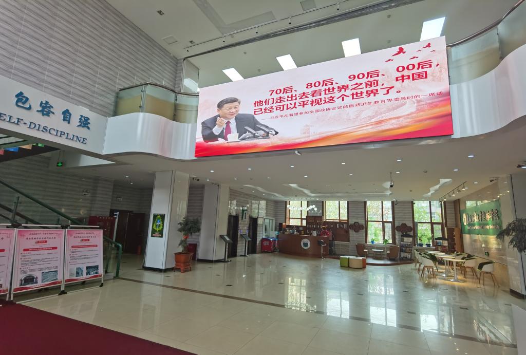 为迎接即将到来的五四青年节,学院充分利用一楼多媒体设备,将习近平总书记对青年学子的寄语展播在电子大屏上,为青年学子走好人生之路提供了精神指引,激励广大青年在奋斗中释放青春激情、追逐青春理想,以青春之我、奋斗之我,为民族复兴铺路架桥,为祖国建设添砖加瓦。