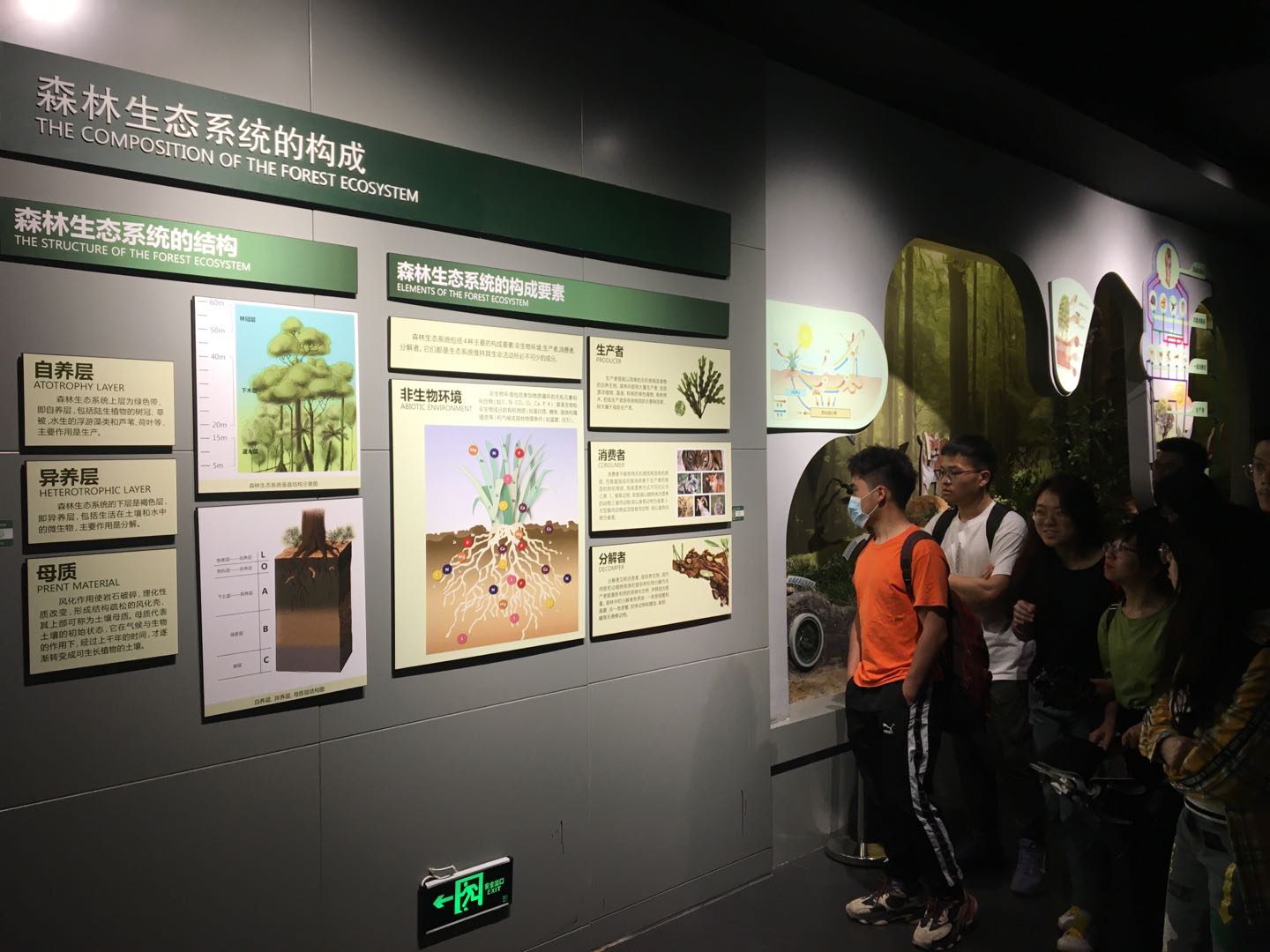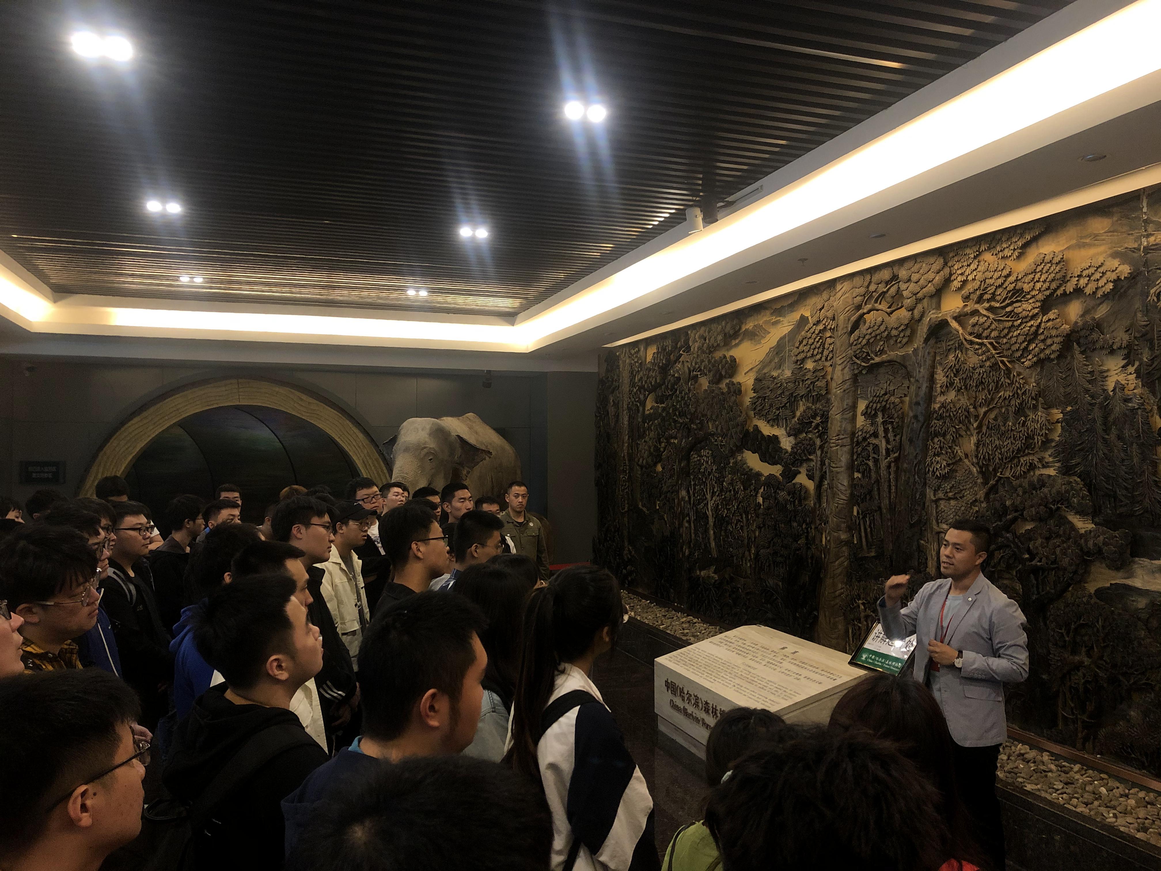 在党员讲解员张晶虹同志的介绍和引领下,大家从令人震撼的主题墙前,走进栩栩如生的“森林与自然界”、“森林与人类”。当森林演化历程、中国森林的分布、森林生态系统的构成、森林动物、蝴蝶谷、高山流水、森林文化起源、现代林业、动植物微生物因子等展陈和馆藏,全景呈现在眼前时,还是让许多同学惊呼“原来森林之美、森林之好就在我们身边。”通过近距离的体验和感悟,大家对博物馆“森林文化凝聚中华上品自然情、生态文明彰显中国强盛美丽梦”的立馆之本理解得更加深刻,也更加坚定了立足东林,服务社会,珍惜自然,保护环境的信心和决心。