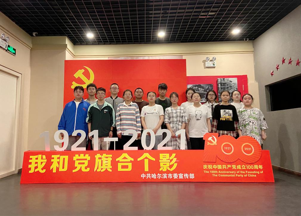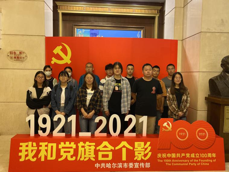 支部全体党员在学校搭建的建党100周年标识合影后出发,前往哈尔滨规划展览馆,在学习参观中了解中国共产党领导哈尔滨市建设的历史。
