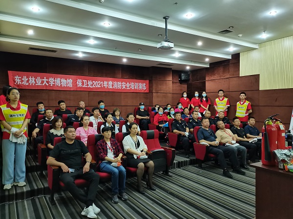 活动初始,保卫处党支部邀请黑龙江省五进安全防火宣传中心姜宇洋教官对博物馆全体馆员、安保人员、保洁人员、学生志愿者进行了消防安全知识培训,姜教官向大家介绍了基础消防知识、逃生技巧,并示范了各类消防器材的操作动作要领。