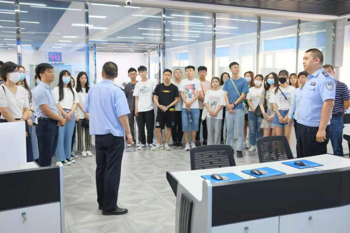 师生们来到法制案件管理中心进行参观,分局智能化、科技化的管理系统给大家留下了深刻的印象,执法全流程的监管让师生对公安工作的制度化、规范化程度有了进一步的了解。
