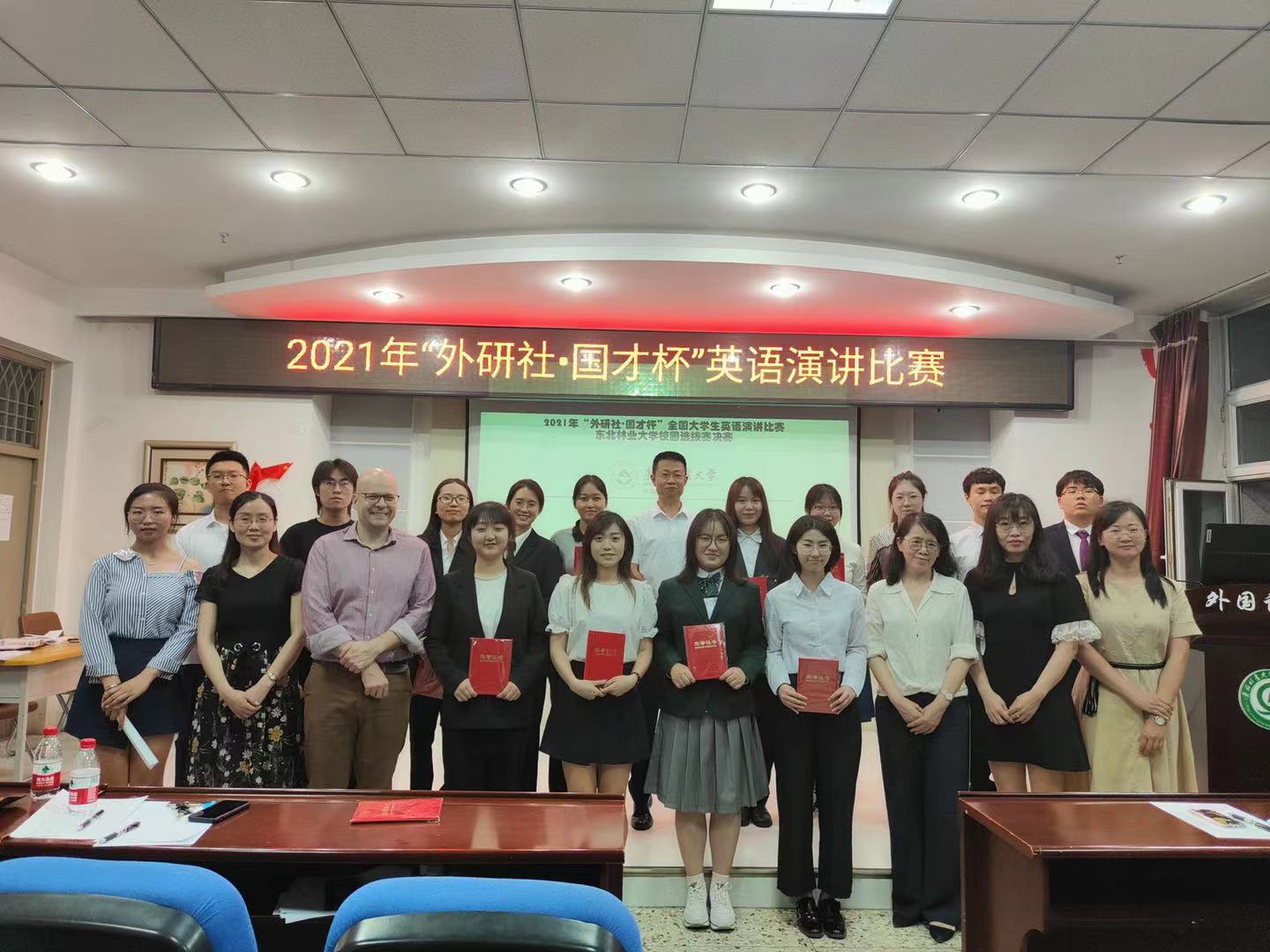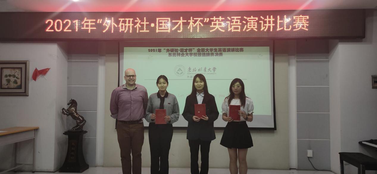 6月25日,我校外国语学院承办的2021年“外研社•国才杯”全国大学生英语演讲比赛东北林业大学校园选拔赛决赛在文博楼1019顺利举行。经过层层选拔,来自我校多个院系的15名选手进入决赛。经过激烈比拼,我校经济管理学院的王嘉禾、文法院的张艾昕和外国语学院的刘璐三位同学获得特等奖,将代表东北林业大学去参加省赛。