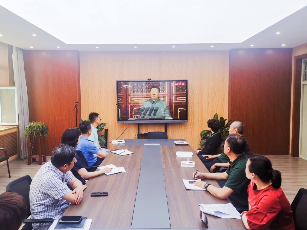 2021年7月1日上午8:00,继续教育学院直属党支部组织学院全体教职工在文博楼308会议室集中观看“庆祝中国共产党成立100周年大会”直播。