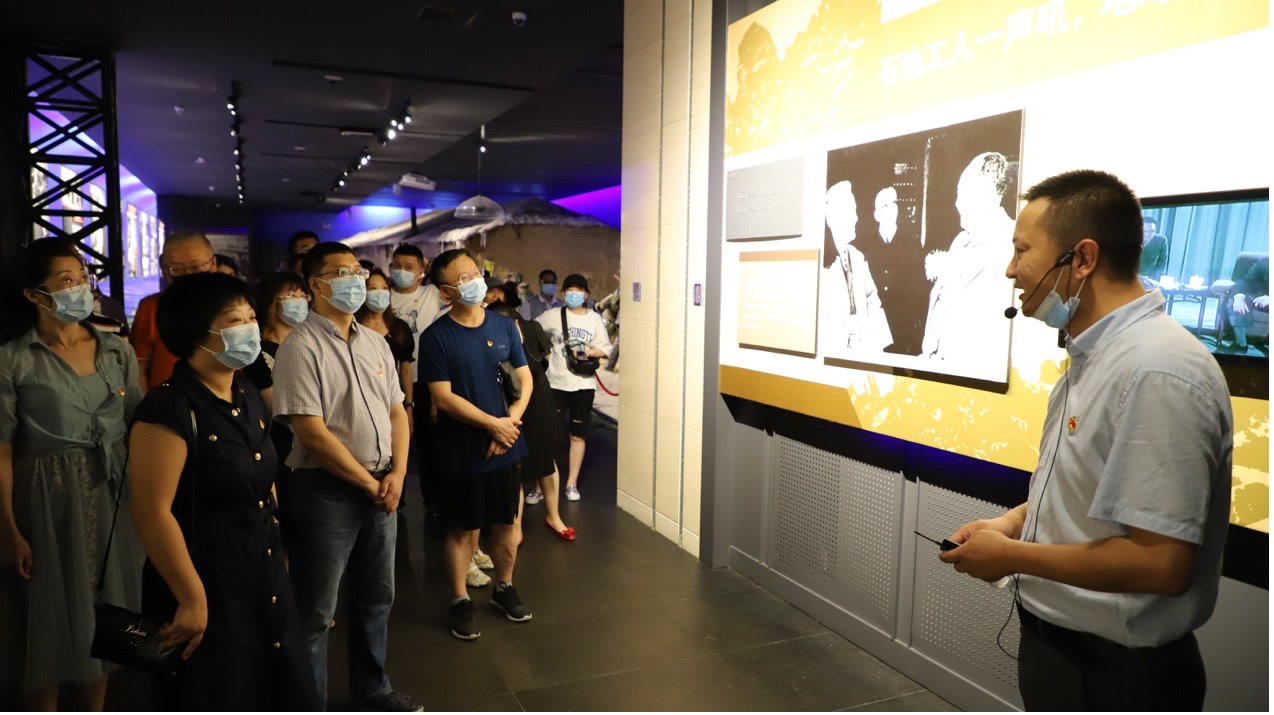 当讲解员用富有磁性的声音喊出“石油工人一声吼,地球也要抖三抖”“有条件要上,没有条件创造条件也要上”“宁肯少活二十年,拼命也要拿下大油田”……这些铁骨铮铮的口号时,在场的老师无不为之燃情,无不为之澎湃激荡。