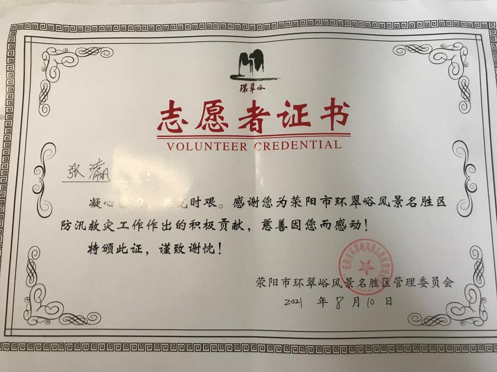 除集中实践学习外,学生党员结合自身实际,在家乡进行分散的党史学习和志愿服务实践活动。学生第一党支部党员,2018级物流工程三班张瀛同学,家住河南郑州,在郑州遭受洪涝灾害后第一时间报名加入当地志愿者组织,徒步来回10公里到道路已经被毁坏的环翠峪运送救灾物资。抗洪任务结束后,新冠疫情反复,张瀛又第一时间到家住的文博社区报名成为抗疫志愿者,三次参与昼夜连续核酸检测工作,负责帮助居民扫码、信息记录、维持秩序等工作。张瀛同学表示:在今年学校开展广泛的党史学习活动之际,我有幸加入了中国共产党,在党课上,了解到了80、90后党员在抗疫一线贡献青春力量守护祖国人民生命安全的感人事迹,21岁的我,虽然不能像军人、医护人员一样去往抗洪、抗疫的一线,但是我在力所能及的范围内为家乡做贡献,担负起党员的职责,请党和人民放心,所有的95后、00后已经成长起来,我们能用青春的力量去守护我们可爱的中国!
