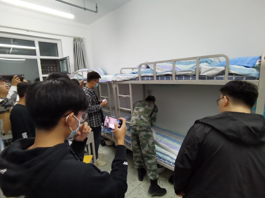 按照学校疫情防控工作要求,学院把新生寝室分成四组,在寝室楼内对全体新生寝室长开展了业务培训。由学生干部按学校内务标准对新生寝室中被子的叠法和摆放位置、床铺整理、生活用品、鞋的规范摆放、室内整体清洁程度等方面进行了详细的讲解并提出了明确的要求。