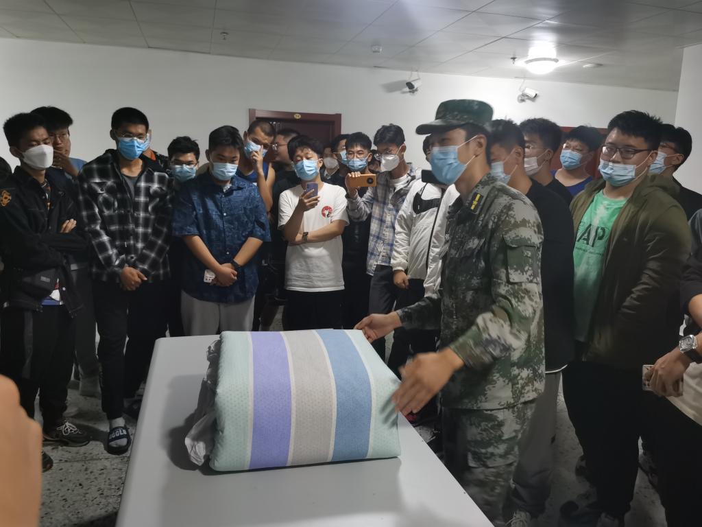 受新冠疫情影响,新学期军训未能如期进行,为了让新生们进一步提高认识,学院邀请我校国防教育服务中心退伍大学生来到新生寝室,对寝室内务整理进行现场教学。对于刚入学的大一新生来说,“豆腐块”的折叠是内务整理的难点。在教学过程中,通过学生教官的现场教学与具体指导,同学们热情极高,不断地请教内务整理相关问题,对寝室内务整理有了更深的认知。学生教官还向新生们讲述了自己的大学生活,鼓励大家在日常生活中锻炼自身,增强体质,希望新生能够以“高标准,严要求”的态度来对待大学生活,无论有无军训都要严格要求自己,认真学习,积极进取,争做新时代的合格大学生。