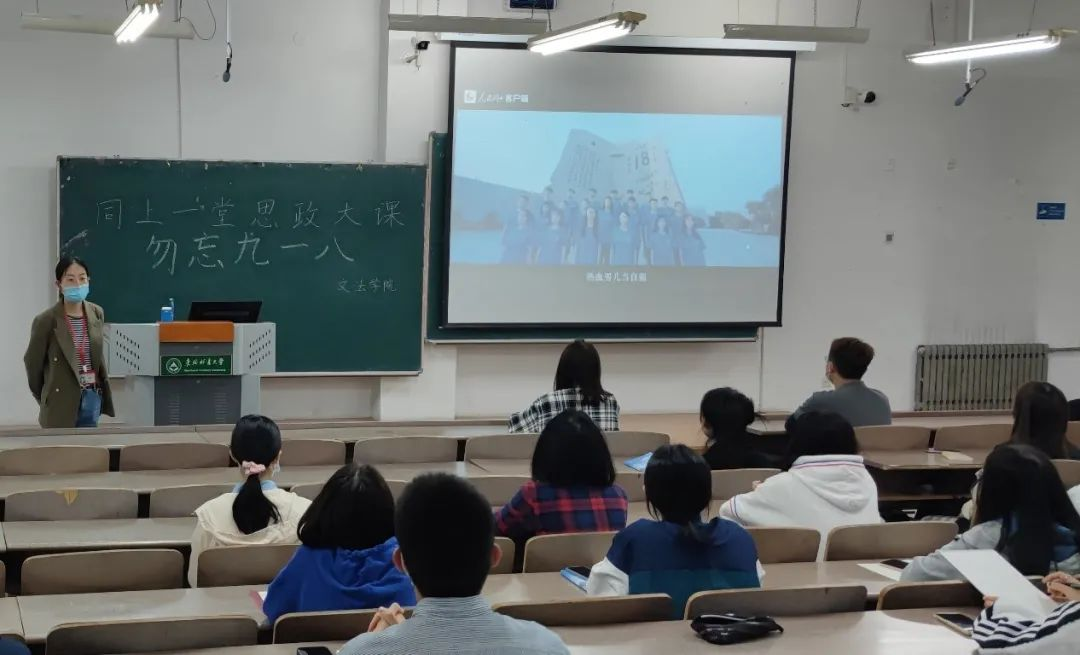 9月18日19时30分,勿忘“九一八”思政大课线上开课。文法学院党委高度重视,采取自主学习与集中学习相结合的方式,组织2021级本科生在丹青楼219、319教室集中观看,同时要求各支部组织集中收看或自行收看,并在支部内谈观看感受,切实做到组织到位、保障到位、覆盖到位。文法学院师生围绕勿忘“九一八”思政大课,交流自己的心得体会。