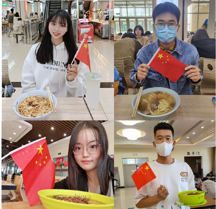 国庆节当日,学院组织学生在线上观看了学校“弘扬伟大建党精神,坚持绿色发展使命”国庆主题升国旗仪式,特殊时期在线上以这样庄严而有意义的方式向伟大祖国献上祝福。同时,学院以“国庆吃面、国泰民安”为主题,向全院发出新民俗活动倡议,倡导学生把吃生日面的传统民俗融入到国庆活动之中,为祖国庆生,表达对祖国母亲的美好祝福。2021级计科3班孟杰表示,第一次以国庆吃面这种新颖的祝福方式为祖国母亲庆生,一碗碗热气腾腾、香气喷喷、喜气洋洋的国庆面,烘托出喜庆热烈、欢乐祥和的气氛,表达了国家基业长青、国泰民安的喜悦心情。大家纷纷表示,作为新时代青年,要不负盛世,奔涌向前,用实际行动书写东林学子绚烂无悔的青春篇章。