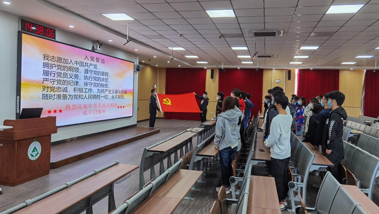 10月3日,学院师生第三党支部全体45名党员,在奥林学院401教室重温入党誓词,并开展“线上致敬英烈,重温红色回忆”活动,向英雄先烈表达无尽的思念与崇高的敬意。2019级化学2班刘妍表示,“入党重在思想入党,誓词需用一生践行。今天面对鲜红的党旗,作为一名党员,当我握紧右拳,重温入党誓词时,我依然心潮澎湃,热血沸腾,重温的不仅仅是初心,更是最崇高的信仰。同时,我也始终铭记先烈们为民族独立、国家富强所作出的伟大贡献和巨大牺牲,他们是榜样,是楷模,是真正的英雄,永远值得我们敬佩和学习。”