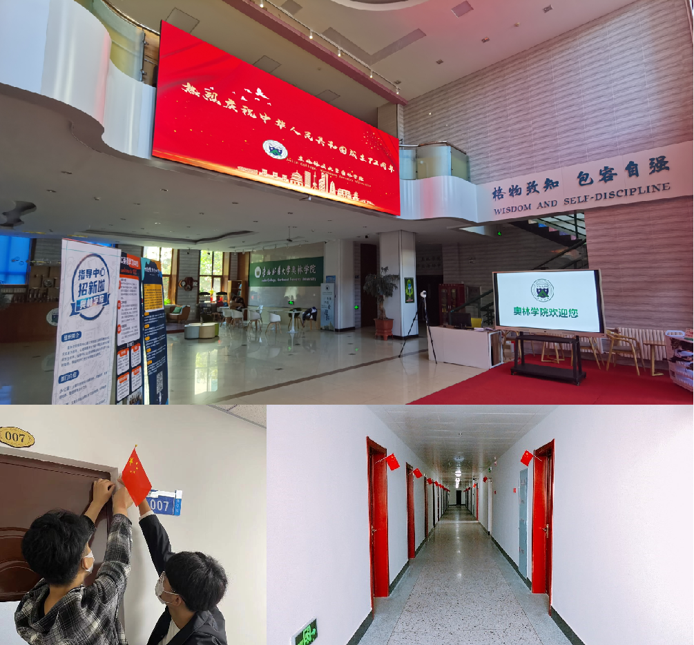 为热烈庆祝中华人民共和国成立72周年,奥林学院党委提前设计部署,通过在奥林楼、学生公寓楼及学院办公区悬挂国旗迎国庆、点亮电子屏送祝福、倡导“国庆吃面、国泰民安”新民俗、重温入党誓词等活动,着力营造文明、喜庆、祥和的节日氛围。