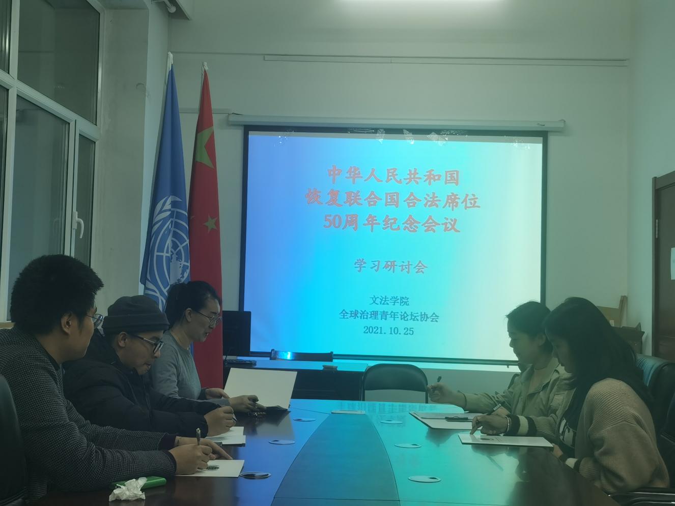 10月25日,习近平总书记出席中华人民共和国恢复联合国合法席位50周年纪念会议并发表重要讲话,东北林业大学全球治理青年论坛协会(前模拟联合国协会)组织成员对此次讲话进行了学习。