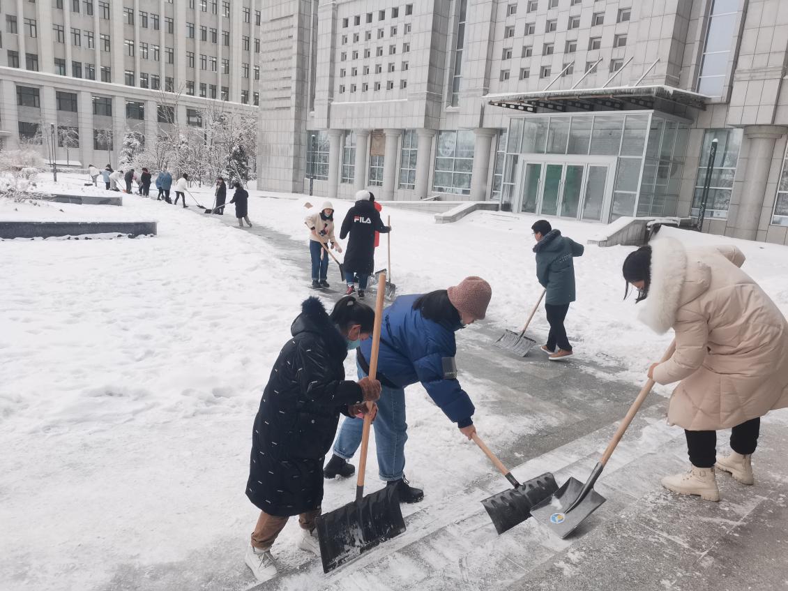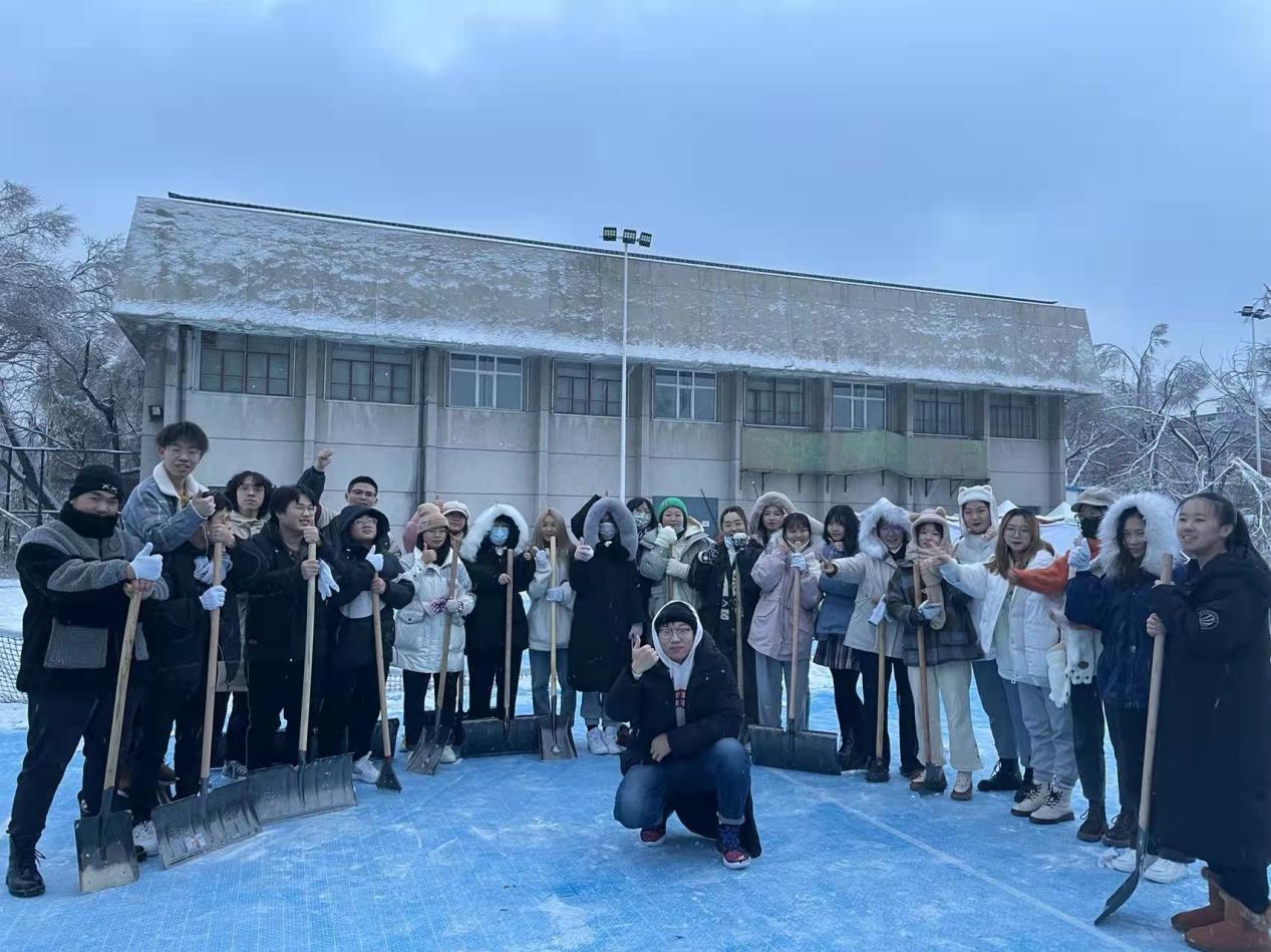 同学们的扫雪劳动既保证了行人的出行安全,又让冬季的校园变得更加美丽,外国语学院清雪队伍成了冬日校园中一道靓丽的风景线。