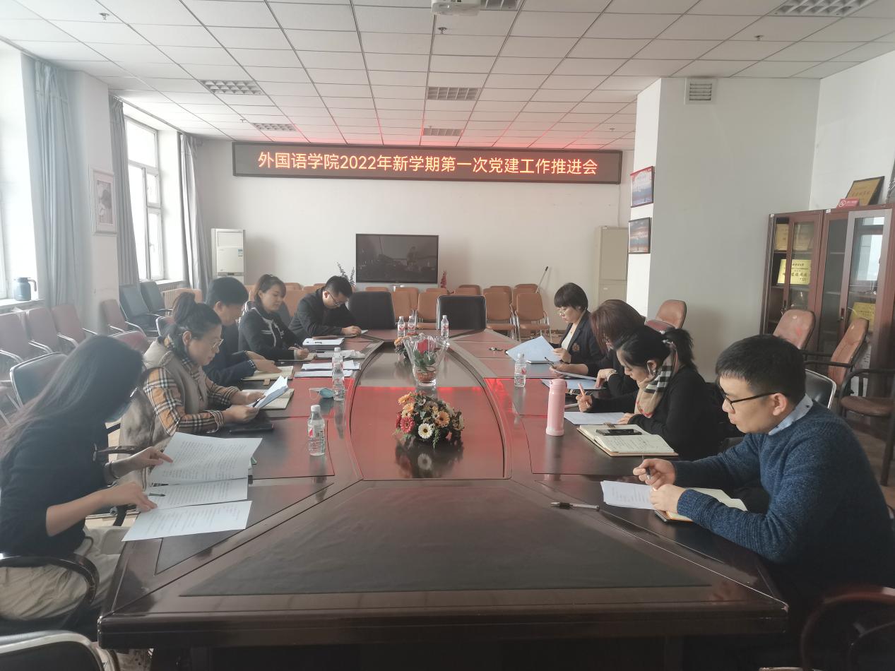 3月2日,外国语学院2022年春季学期第一次党建工作推进会在文博楼1210召开,会议就学院2021年党建工作的主要业绩进行了回顾总结,并就2022年学院党建工作重点任务进行了研究部署。学院党委书记张斌、副书记郭林及各基层党支部书记参加会议。会议由党委副书记郭林主持。