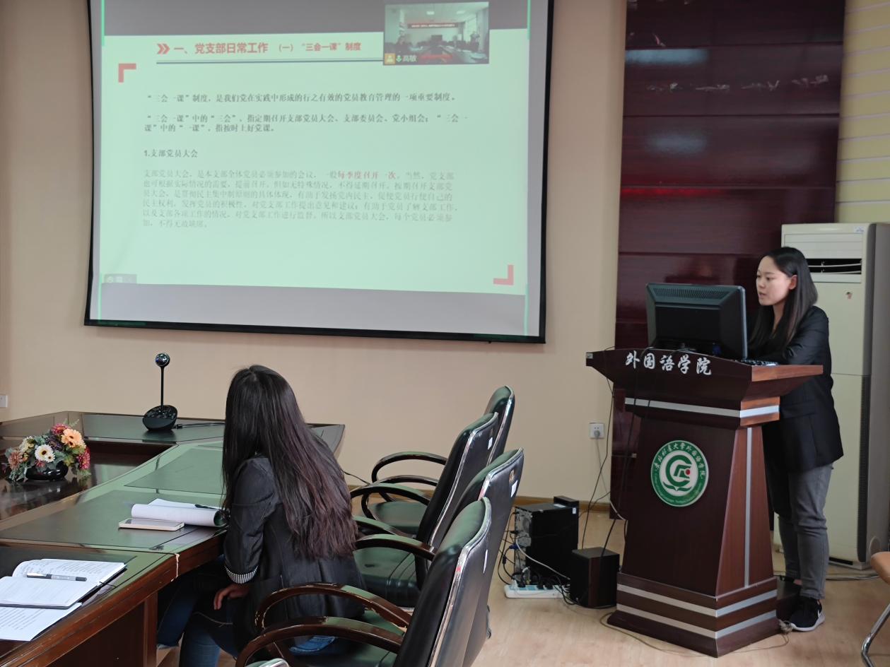 为深入贯彻习近平新时代中国特色社会主义思想和党的十九届六中全会精神,提升学院各党支部党务工作者工作水平和实操能力,外国语学院于4月20日15时以线上线下相结合的方式召开基层党支部党务工作培训会,会议由学院党委副书记郭林主持,学院各党支部书记及支委参加本次培训会。
