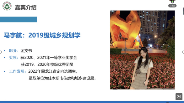2019级城乡规划学硕士马宇航结合自身的经历,向同学们介绍了考公务员的一些建议,她从公务员的报考类型、报考注意事项对国家相关政策等进行了详细全面的介绍,提并醒同学们要多关注包括信息,根据信息及时去调整自己的报考方向。同时,她建议同学们在考试的准备与学习过程中切勿盲目报班,在学习中要增强自身的主观能动性,只有基础夯实,才能更好的掌握做题技巧提升实际能力。