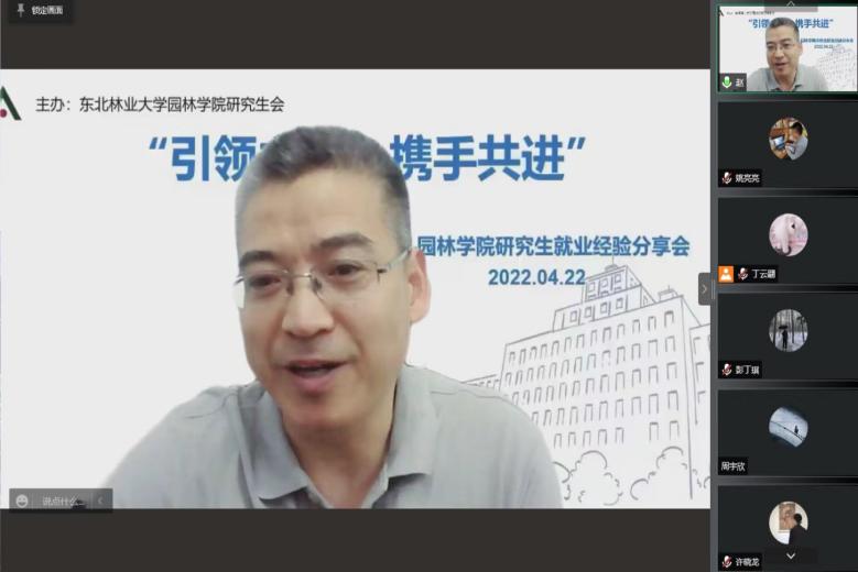 为进一步推进2022届研究生毕业生就业工作,助力研究生明确自身职业定位,明晰就业形势,找准就业方向,提早谋划2023届毕业生就业,加强学院全体研究生就业经验交流,4月22日晚,园林学院在腾讯会议平台线上举办了研究生“引领之路,携手共进”就业经验分享会。园林学院党委书记赵新勇,学院副书记、副院长杨扬,学院团委书记、研究生辅导员姚亮亮和全体研究生参与了本次会议。
