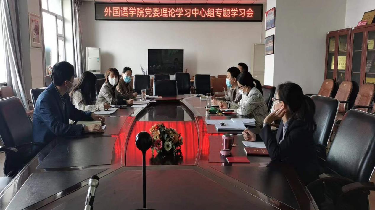 5月11日下午,外国语学院于文博楼1210召开党委理论学习中心组专题学习会,学院党委理论中心组成员参加了此次会议,会议由学院党委书记张斌主持。