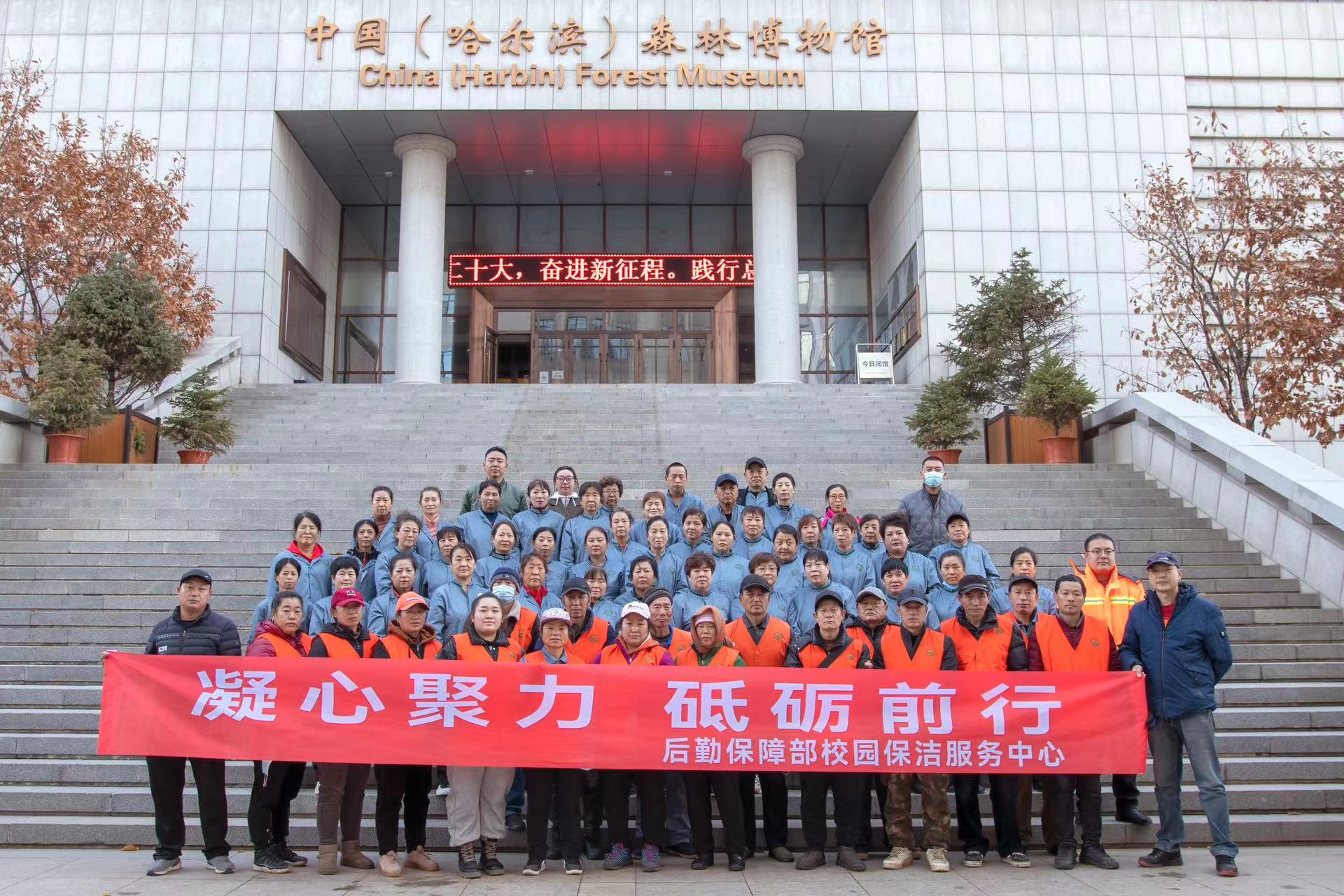 多年来,校园保洁知天气晴雨,知冬夏冷暖,却不太了解学校的教学科研活动;校园保洁在学校70年发展历程中留下了辛勤工作的印记,却不了解学校取得的辉煌成就。为了填补这些个遗憾,引导保洁员工知东林、爱东林,增强身在东林的归属感,环卫工人节到来之际,后勤保障部组织保洁中心员工参观了中国(哈尔滨)森林博物馆与校史馆。