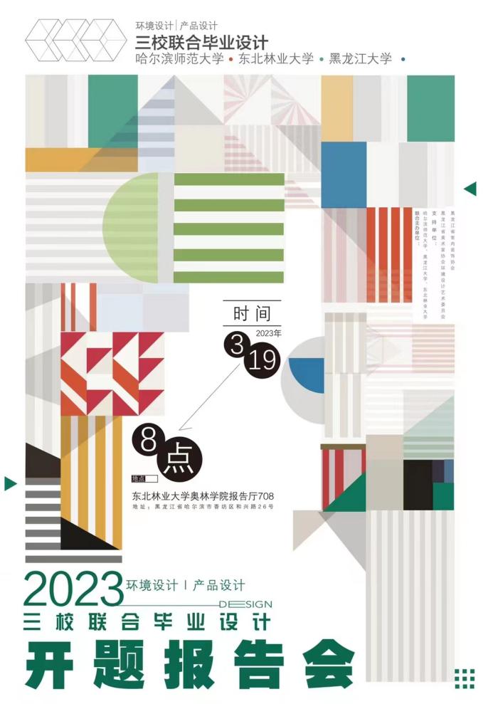 为推动龙江全面振兴全方位振兴,打造龙江创意设计新高地,3月19日上午,东北林业大学、哈尔滨师范大学和黑龙江大学共同主办的,以“沉睡·唤醒·建构——城市记忆与场所再生”为主题的三校联合毕业设计开题报告会,首次在东北林业大学奥林学院708报告厅成功举行。东北林业大学教务处副处长陈立刚、黑龙江大学艺术学院副院长韩峰、哈尔滨师范大学美术学院设计学学科带头人张红松,东北林业大学材料科学与工程学院副院长高振华和宋永明、设计学学科带头人赵俊学、产品设计专业负责人宫艺兵以及三校联合毕业设计的指导教师和同学们通过线上线下相结合的方式,共计千余人参加了此次开题报告会。