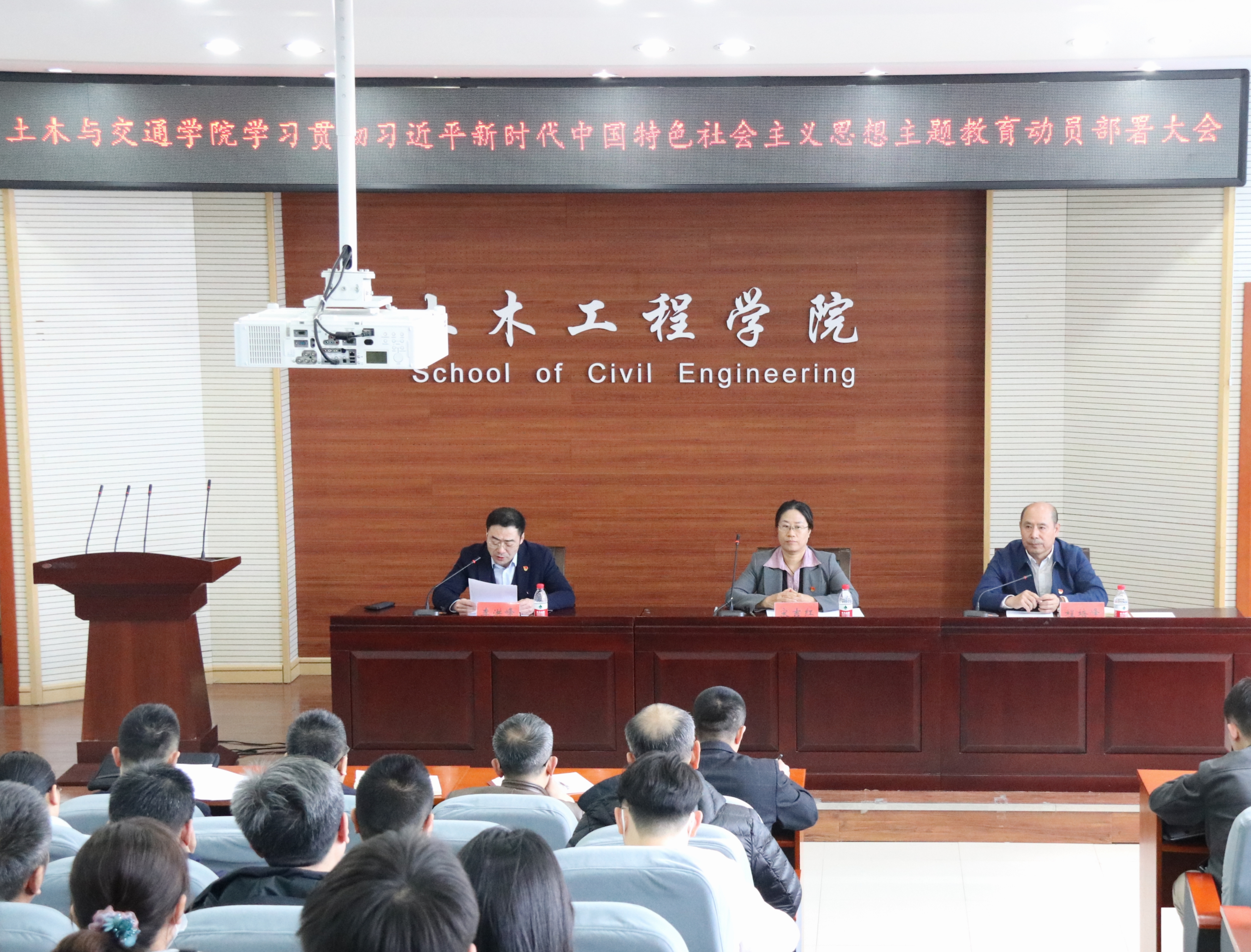 土木与交通学院于4月23日中午在主东301召开思想主题教育动员部署大会,部署安排学院主题教育工作。校党委副书记、纪委书记宋吉红出席会议并讲话,学院领导班子、各党支部书记及委员、教师和学生代表参加会议,会议由学院院长程培峰主持。