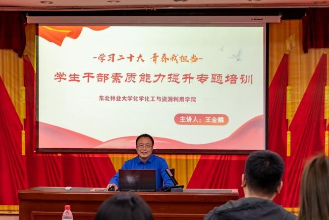 青春心向党,建功新时代。为深入学习贯彻习近平新时代中国特色社会主义思想,抓好主题教育,加强学生干部的教育管理,培养学生的自我管理、自我教育、自我提升能力,助力学生干部提升自身素质,改进工作方法,提高自我工作能力,砥砺自身品行,实现综合素质的提升,5月10日,化资学院党委副书记、副院长王金麟以“学习二十大、青春我担当”为主题,为同学们上了一堂“学生干部素质能力提升”专题思政课。