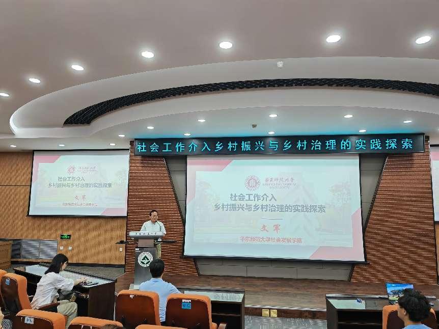 6月22日上午,文法学院社会工作学科建系20周系列学术讲座在奥林楼101教室举办。本次讲座特邀国家重大人才工程获得者、华东师范大学社会发展学院院长、教育部高校社会学类教学指导委员会副主任委员、中国社会学会常务理事、中国社会工作学会常务理事文军教授,作题为《社会工作介入乡村振兴与乡村治理的实践探索》的学术报告。由卞文忠教授担任主持人和评议人,学院100余名师生聆听了讲座。