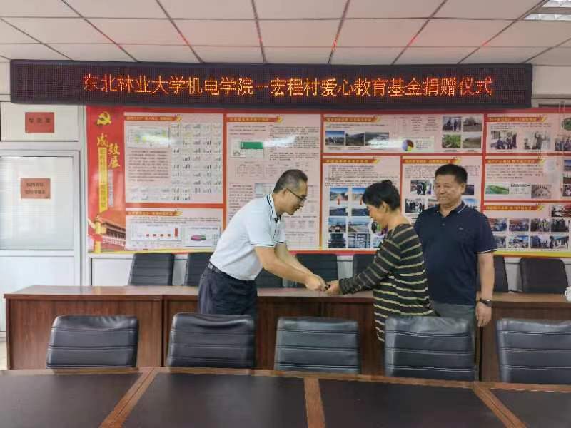 泰来镇宏程村支部书记张树库和驻村第一书记常方圆简要介绍了宏程村、东林采摘园的基本情况,深情回顾了东北林业大学帮扶泰来一举摘掉34年贫困帽子的点点滴滴。吴哲代表本支部向宏程村2户家庭捐赠2000元爱心基金,用来帮扶特殊困难学生。当得知接受捐赠的2名学生,分别因先天性疾病和突发交通事故导致家庭教育负担较重时,王佳彤表示,学院党委将以正在开展的主题教育为契机,动员号召各基层党支部与宏程村建立结对共建帮扶的长效机制,探索多元化“党建+”路径,着力发挥学院的组织优势、师资优势、科技优势,助力宏程村整体提升教育水平。