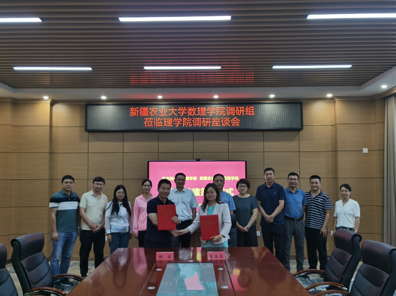李玉荣和魏岩共同签署了《东北林业大学理学院党委与新疆农业大学数理学院党委共建合作协议》。双方将以党建引领搭建合作交流平台,充分发挥双方党委的政治优势,促进党建合作与教学科研合作的深度融合,为贯彻落实新时代党的治疆方略奋力书写农林高校数理学院的答卷。