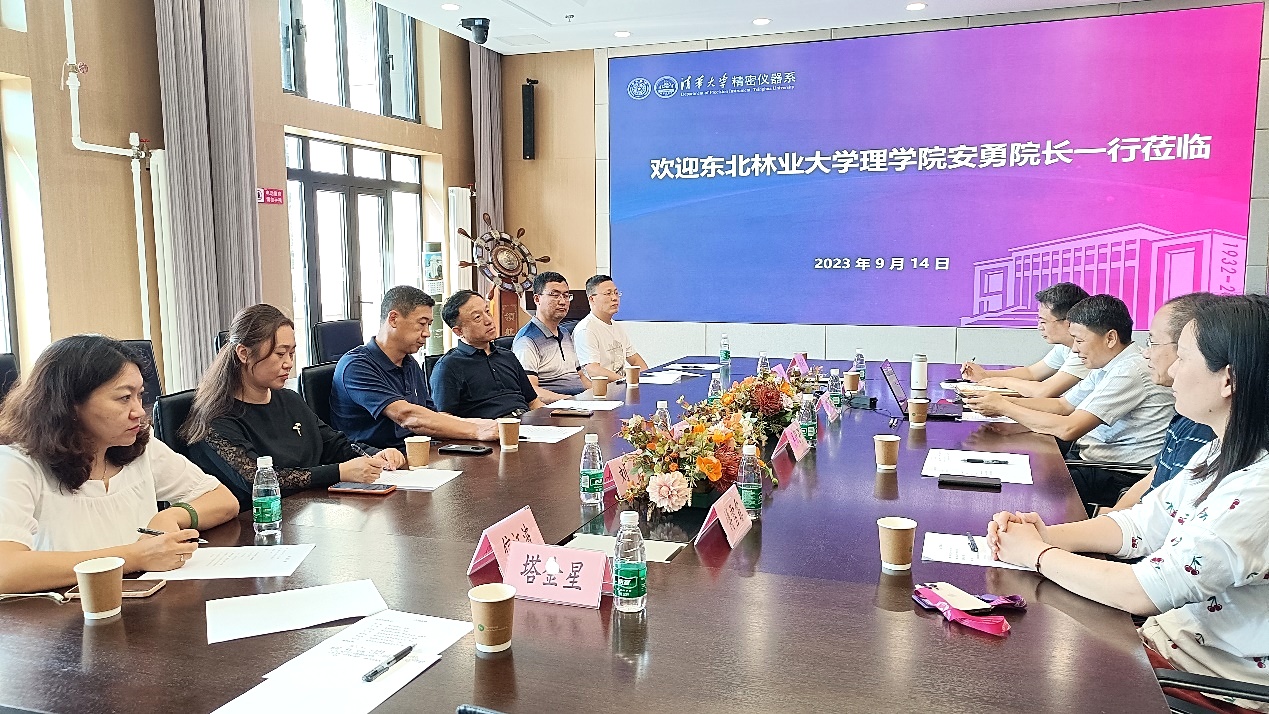 在北京林业大学理学院,院长汪沛对东林理学院一行到来表示欢迎。院党委书记龙晓凡从部局市共建、一校两区讲起,介绍了学院服务全校人才理学素养培养的定位、国家林木种质资源库项目、一流课程建设等工作。双方就高层次人才引进、学科发展及方向、新教师个人发展、教学创新大赛备赛、学生表达力培养、深造率等工作进行了交流。安勇表示,东林理学人将做好战略规划,抓住新发展机遇,争取尽快建成数学一级博士点、物理学一级硕士点,为东北全面振兴贡献东林理学人的力量。