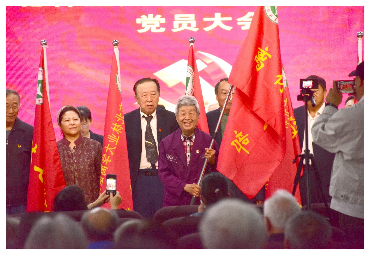 利用统计选票的时间间隙,授旗仪式和表彰仪式隆重举行。徐岩在主持仪式时表示,党支部是党的基层组织,在党的伟大事业中肩负着推动发展、服务群众、凝聚人心、化解矛盾等重要作用。希望每一位党员,都应以老骥伏枥,志在千里的豪迈姿态,永葆中国共产党人的初心本色,为学校改革发展积极发挥余热,讲好东林故事,唱响东林好声音。他强调,以本次党员大会为契机,离退休工作处党委正式启动“支部亮旗帜,党员亮身份”活动,旨在增强每一位党员的初心使命感,展现离退休党支部的革命风采。