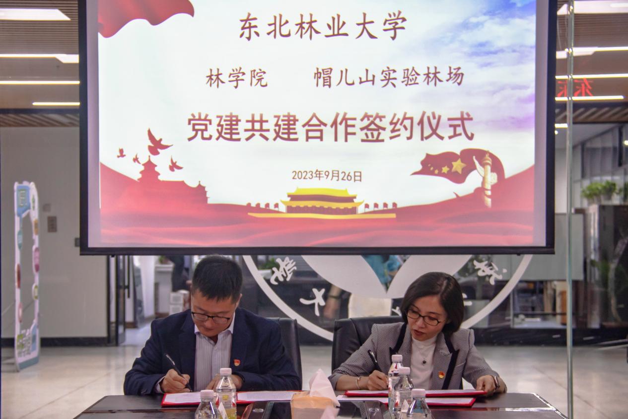 为深入学习贯彻习近平新时代中国特色社会主义思想和党的二十大精神,践行习近平生态文明思想,提升党建工作质量和学院工作水平,推动新时代党建和业务工作双融合、双促进,形成共享资源、共谋发展的工作新格局,9月26日,林学院与帽儿山实验林场在林科楼六楼会议室举行党建共建签约仪式。帽儿山实验林场领导班子成员、林学院领导班子成员及相关负责人参加仪式,签约仪式由林学院党委书记宋妍主持。