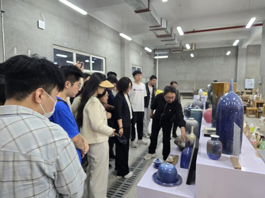 参与人员分别参观学习了艺术实验中心的陶艺工作室、漆艺工作室、纤维工作室以及服装实验室,分别了解了地域特色冰花瓷的制作、漆画的制作以及哈尔滨学院艺术实验中心服务社会经济文化建设的各项成果。冰花瓷的制作深深吸引了大家的目光,据郭鹏程讲,冰花瓷纹理灵感来源于北方冬天的窗花,其形成过程自然未经修饰,每一件都独一无二、十分珍贵。
