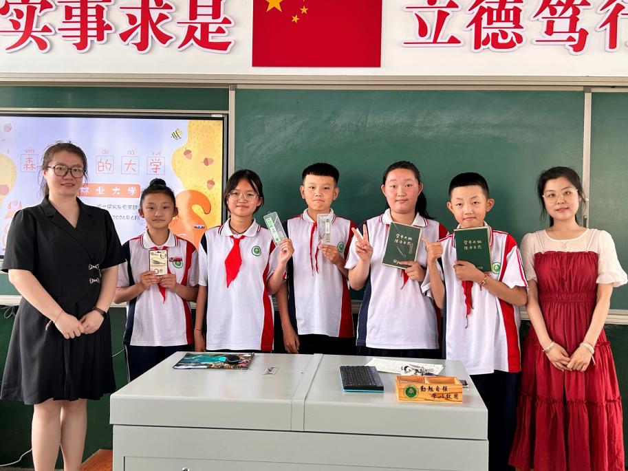 在齐齐哈尔市泰来县泰来镇中心校的宣讲结束后,同学们齐声诵读“学参天地、德合自然”的东林校训欢送宣讲团队。“没想到自己在课堂最初讲解的学校校训,大家最后脱口而出,这让我觉得很感动,也让我觉得自己的讲解是有意义的。”机电工程学院林业工程专业2022级博士研究生艾梦瑶说。