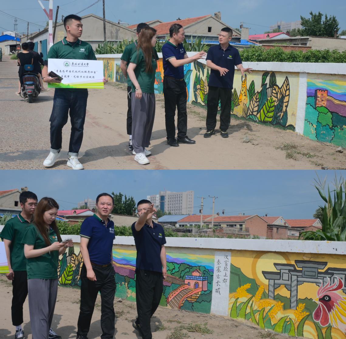 实践第四天,实践团队抵达泰来县宏程村。村支部书记张树库向队员们介绍了宏程村与东北林业大学合作后的发展与变化。第一书记秦锐带领队员们对宏程村整体风貌进行实地考察,双方就艺术融合墙绘设计的方案展开讨论。