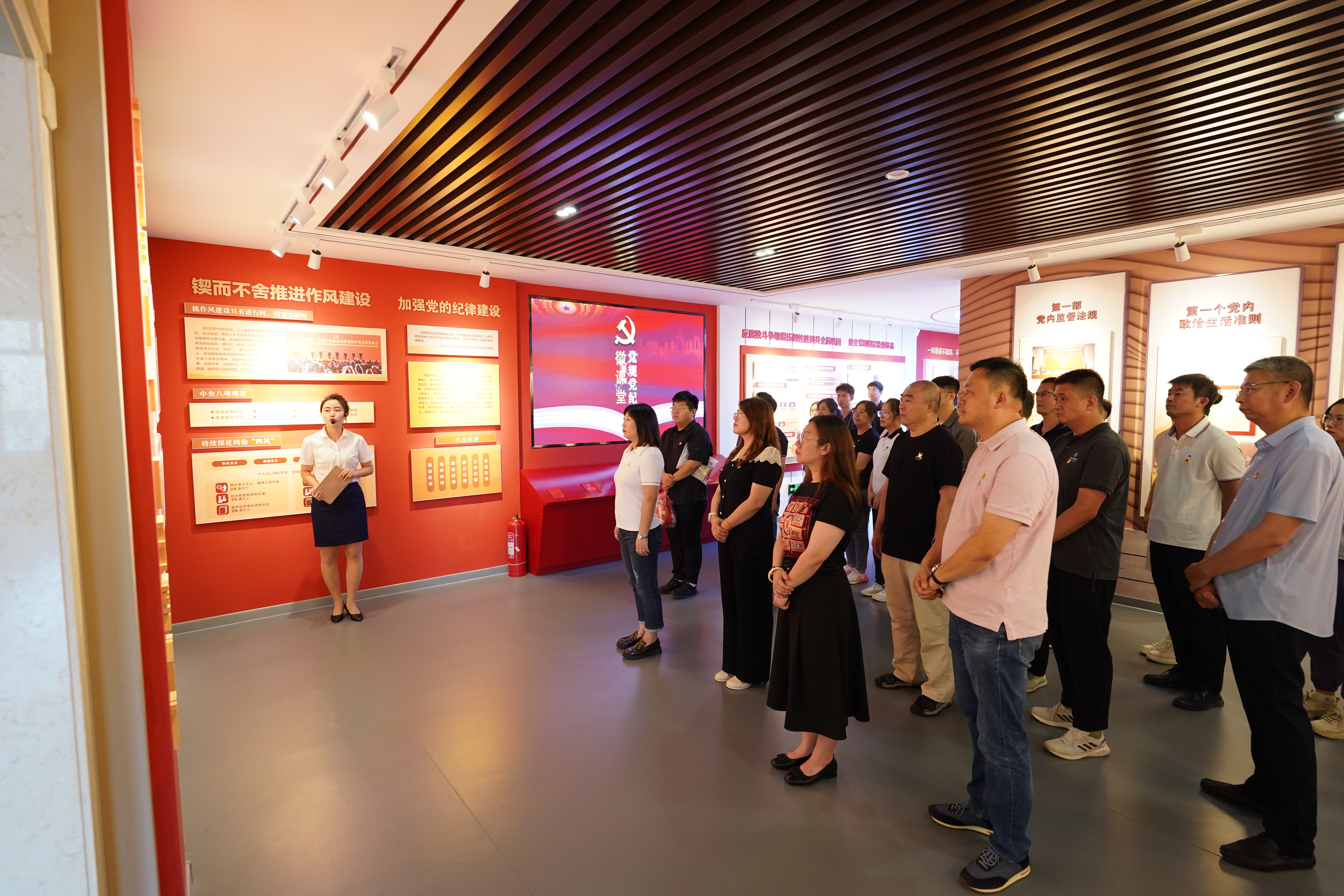 活动伊始,讲解员详细介绍了不同历史背景下,党的纪律适应时代需求,不断走向成熟、走向全面的历史沿革。一张张图文资料,将党纪所蕴含的厚重历史与深刻内涵直观地呈现在大家眼前,如同一部党纪教科书,使同志们深刻感受到党纪在历史长河中健全与赓续的过程。