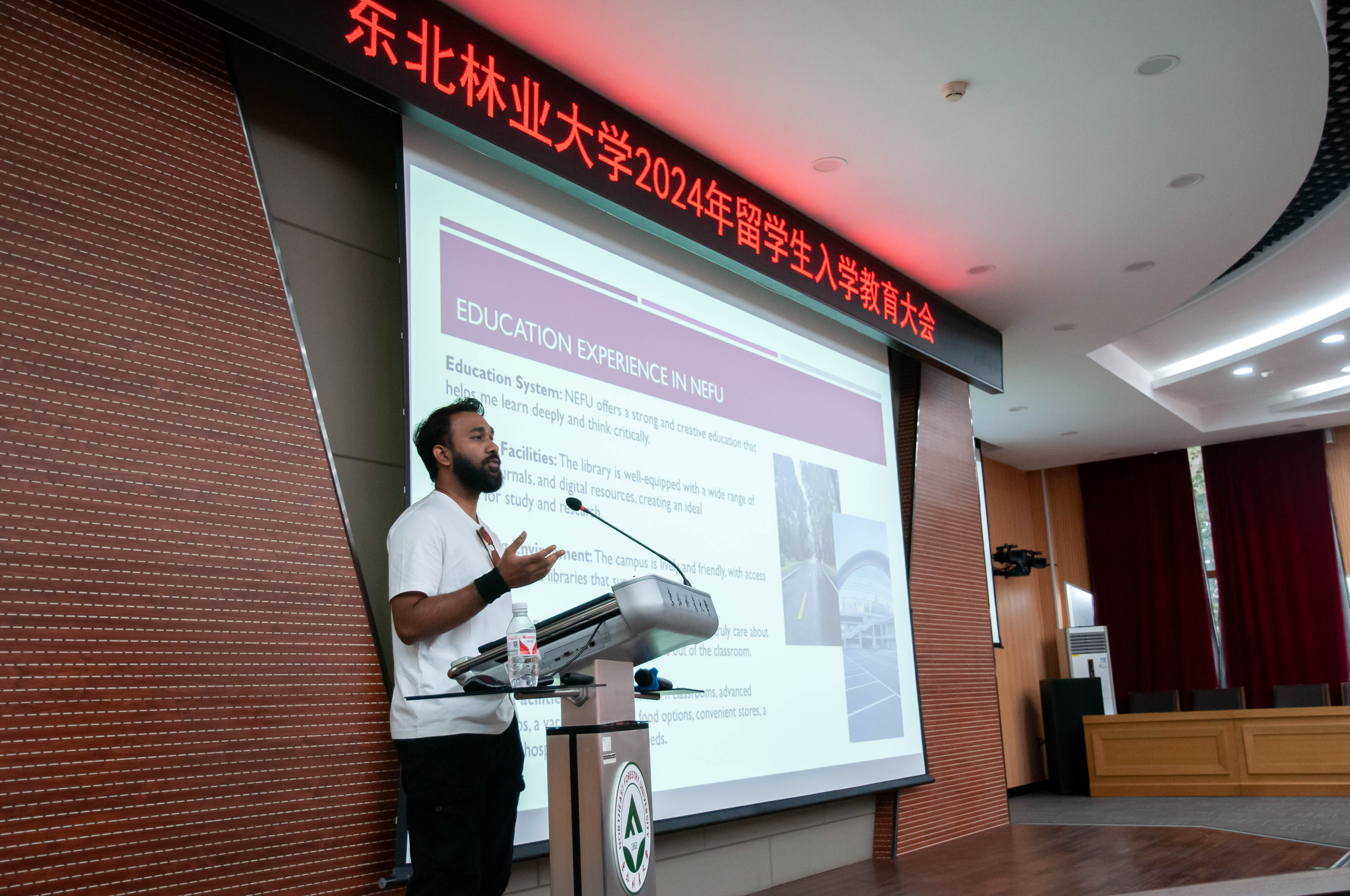 学校2024年优秀留学毕业生星光(NAZMUS SAKIB)作为学生代表发言,讲述了他在东林攻读硕士学位期间的学习生活感受,分享了学习经验、参加学术文化交流和校园活动的心得。他建议留学新生一定要积极融入校园和课堂,多与导师和中国同学沟通交流,才能在留学生活中收获更多精彩。