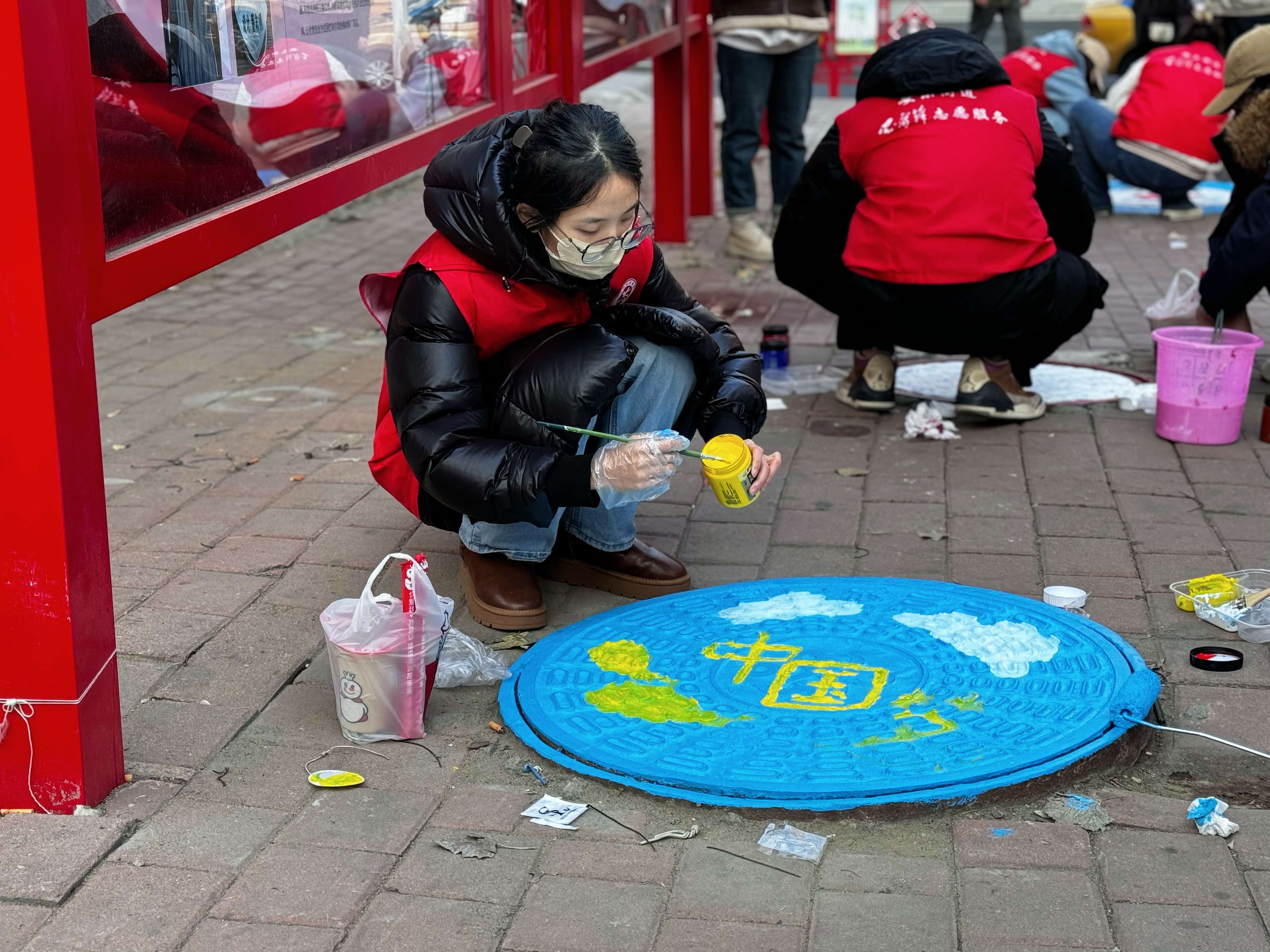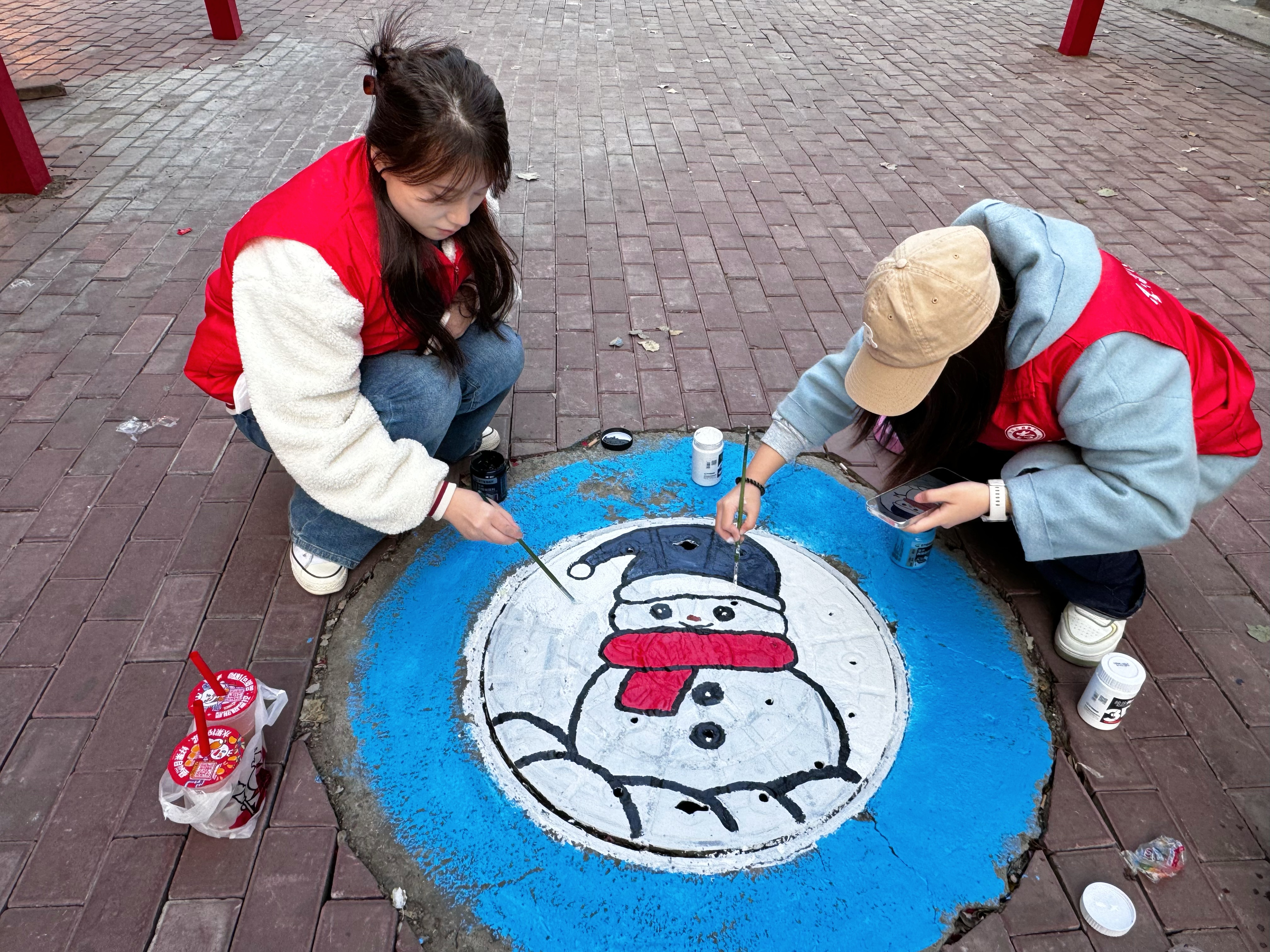 学院以实践活动为桥梁,探索美育服务社会新路径。11月8日,学院组织学生志愿者在香坊区安乐街道开展 “‘井’上添花,艺美安乐”街道美化公益活动。学生们将冰雪文化、中国梦等主题融入设计,将平日里不起眼的街道井盖转变为了一幅幅生动的艺术画卷,赋予街道公共设施全新的文化价值,为服务社区治理贡献家居力量。
