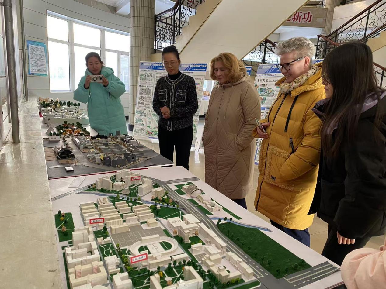 随后,园林学院12月1日-10日赴俄罗斯短期交流的研究生实践项目代表汇报了赴俄实践成果。与会嘉宾热烈交流,并针对进一步开展师生互访、联合指导毕业设计等进行了深入的探讨。园林学院党委书记赵新勇还同俄方互赠礼物。座谈结束后,代表团观摩了邱天怡老师的风景园林设计类课程教学过程和王丹老师的城乡规划专业模型布展。