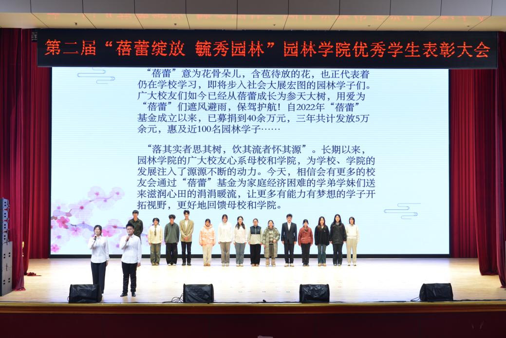 表彰大会在全场合唱《前进,东北林业大学》的歌声中圆满落幕。2022级风景园林专业硕士研究生张艺菲表示,参加本次表彰大会,内心充满了无比的激动,希望每一颗蓓蕾都能在阳光雨露中绚丽绽放,共同书写属于我们园林人的辉煌篇章;2024级风景园林三班谢瑞表示,很荣幸作为“蓓蕾”萌芽专项资助的领奖人参加本次表彰大会,在今后的生活中会继续向下扎根、向上生长,用自己的青春和汗水描绘出园林事业的美好未来。