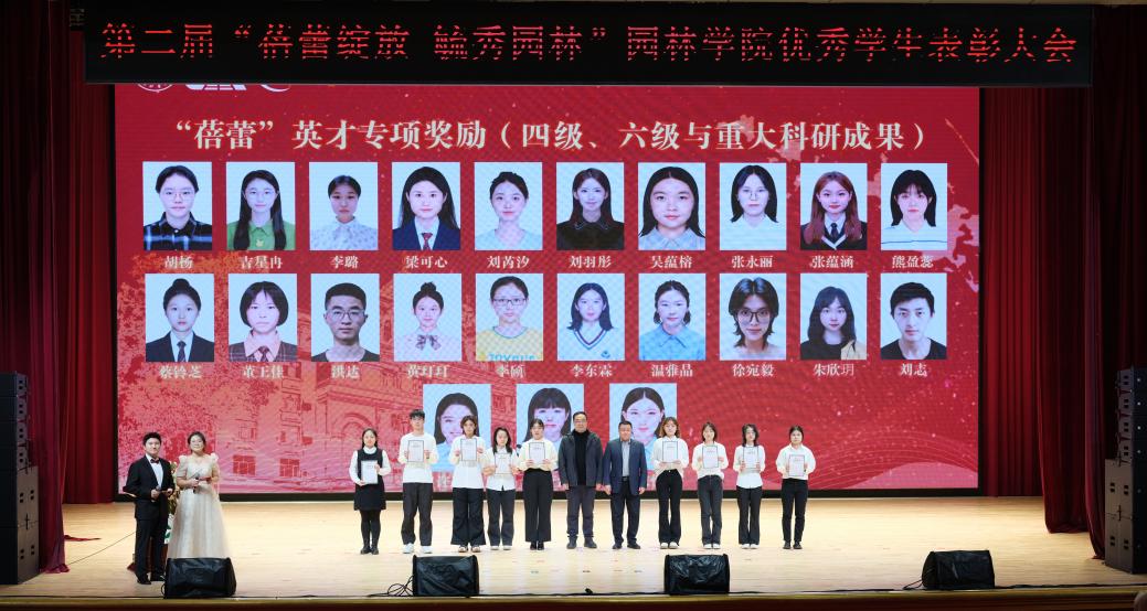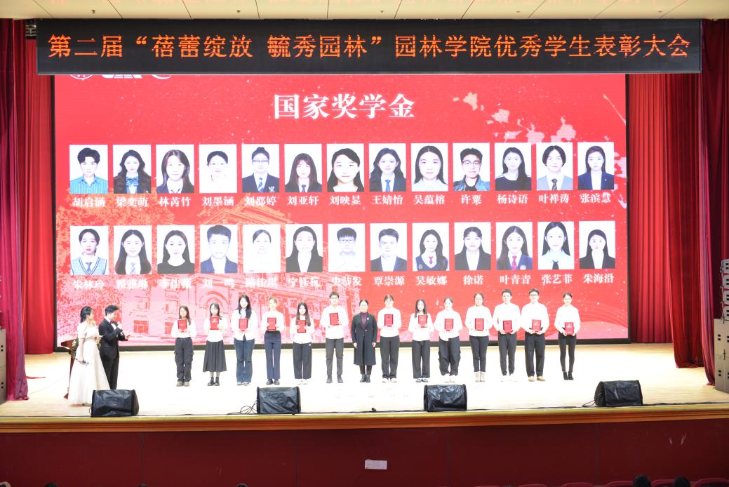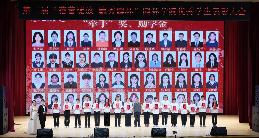 12月24日晚,园林学院第二届“蓓蕾绽放,毓秀园林”优秀学生表彰大会在科学会堂举行。学校党委副书记、纪委书记宋吉红,校友工作办公室主任姚远,党委学工部副部长、学生处副处长兼学生资助管理中心主任关冰冰,园林学院党政领导班子、校友代表、师生代表等共同参加了本次表彰大会。