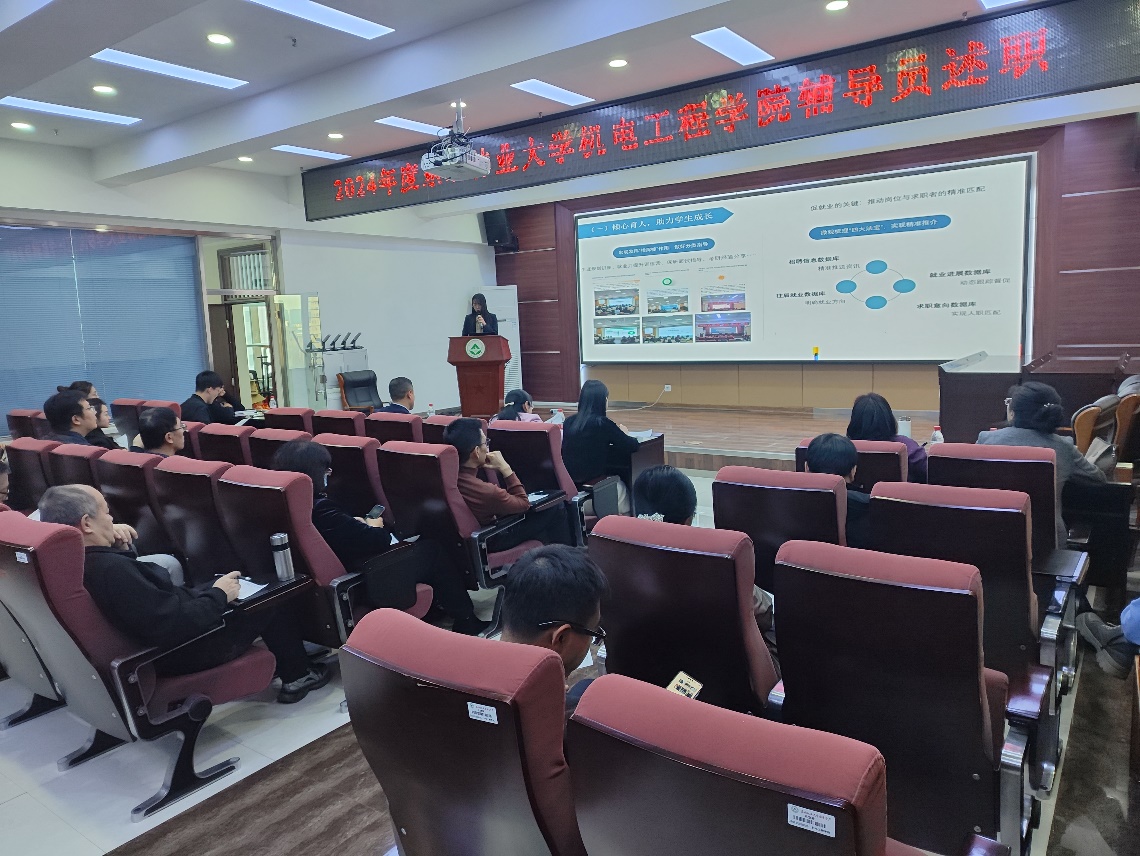 为全面贯彻落实党的二十大和二十届三中全会精神,深入学习贯彻全国教育大会精神和习近平总书记关于教育的重要论述,机电工程学院于2025年首个工作日,在成栋楼722会议室,召开辅导员述职大会,考核评议2024年度学生工作。学院领导班子、两委委员、各专业(教研室)负责人、学院办公室主任、工会主席、教工党支部书记代表参加会议。会议由学院正处级组织员、党委副书记兼副院长郑燕主持。