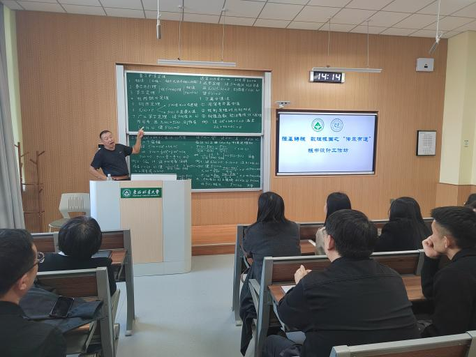赛前培训环节,理学院匠心打造板书设计工作坊,特别邀请教学经验丰富的隋振章老师和王文军老师开展“传承有道”专题教学活动。两位教师倾囊相授,将多年积累的板书设计精华与心得毫无保留地分享。从板书内容的科学布局、规范的书写技巧,到逻辑架构的搭建、重点难点的突出方法,每一个教学要点都为青年教师们提供了极具价值的教学经验,助力他们快速提升板书设计能力。