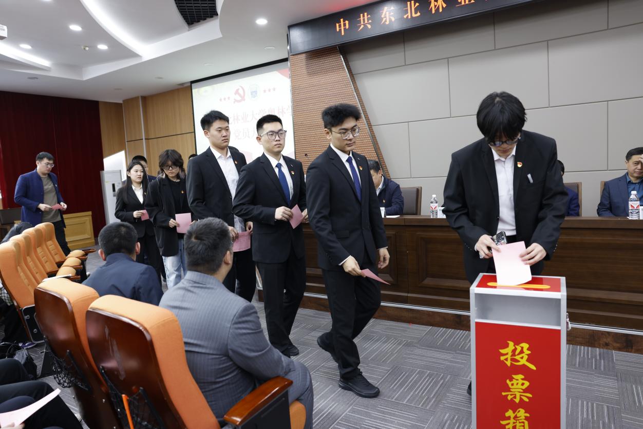 会议宣读《选举办法(草案)》,与会党员一致表决通过;会议宣读出席中国共产党东北林业大学第十四次党员代表大会的代表候选人建议名单,并简要介绍候选人预备人选基本情况。经全体党员酝酿讨论,一致表决通过代表候选人预备人选。经与会党员一致表决,通过了大会监票人、计票人名单。