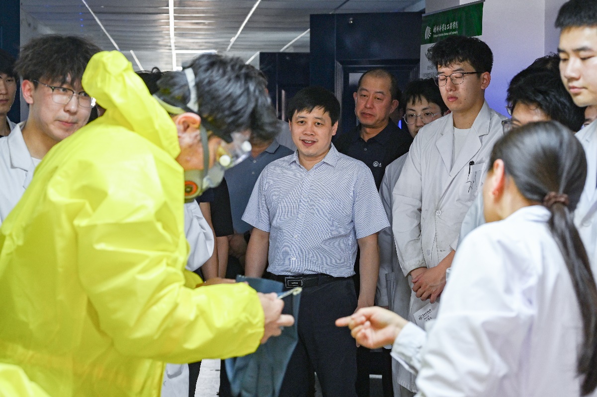 实验室安全规范演练中,通过化学品泄漏、酸碱灼伤等安全事故处置、洗眼器和应急喷淋器的使用、安全隐患辨识等多个场景演练,引导师生建立“风险预判-应急响应-后期处置”的全流程思维,真正做到遇到险情会应对。