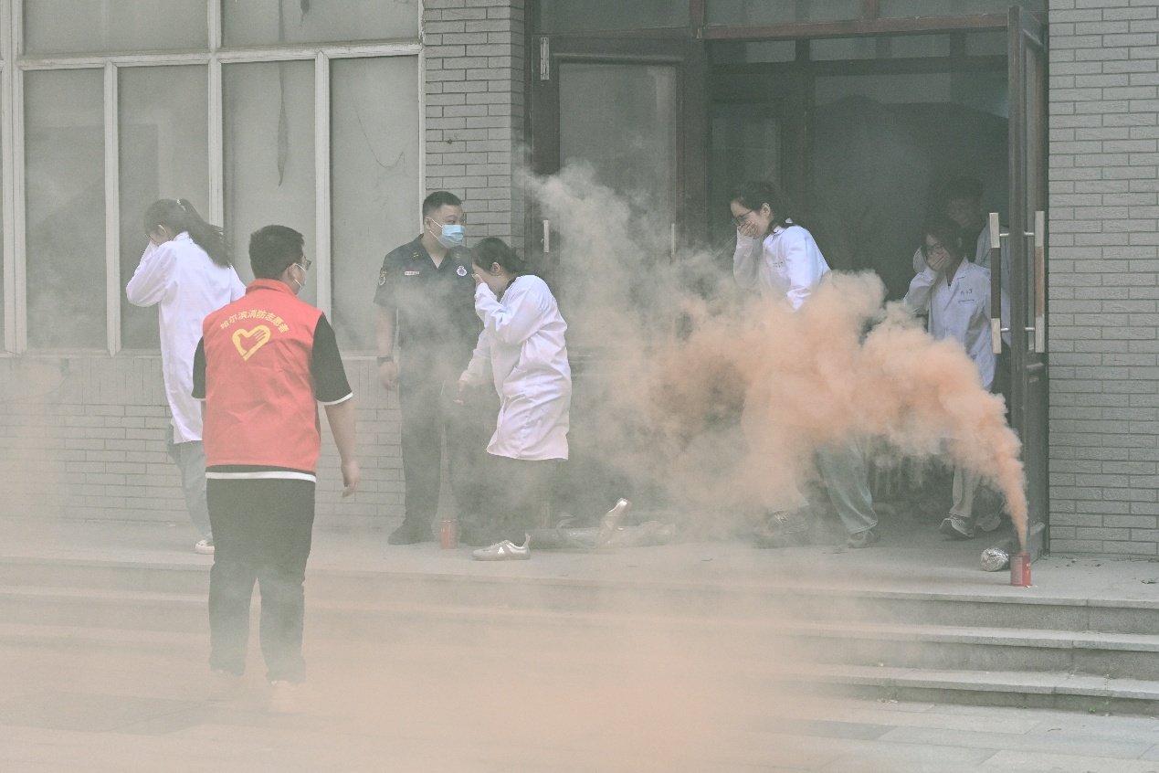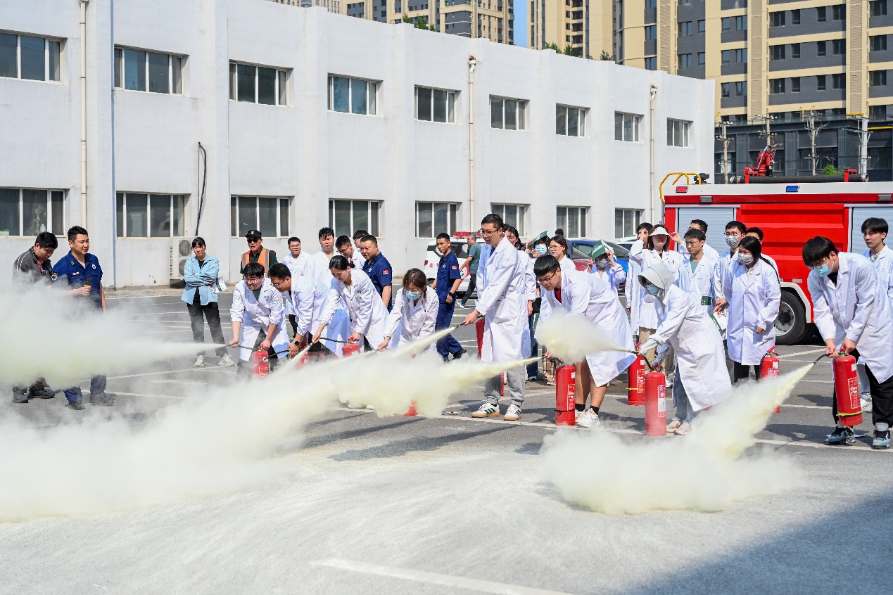 在消防疏散演练中,模拟实验室起火场景,师生按照就近引导、就近灭火、就近疏散原则,完成烟雾环境下的逃生推演。保卫处王宇新科长现场演示“一提二拔三握四压”灭火器操作规范,师生有序进行实操演练,掌握了灭火器使用技巧。