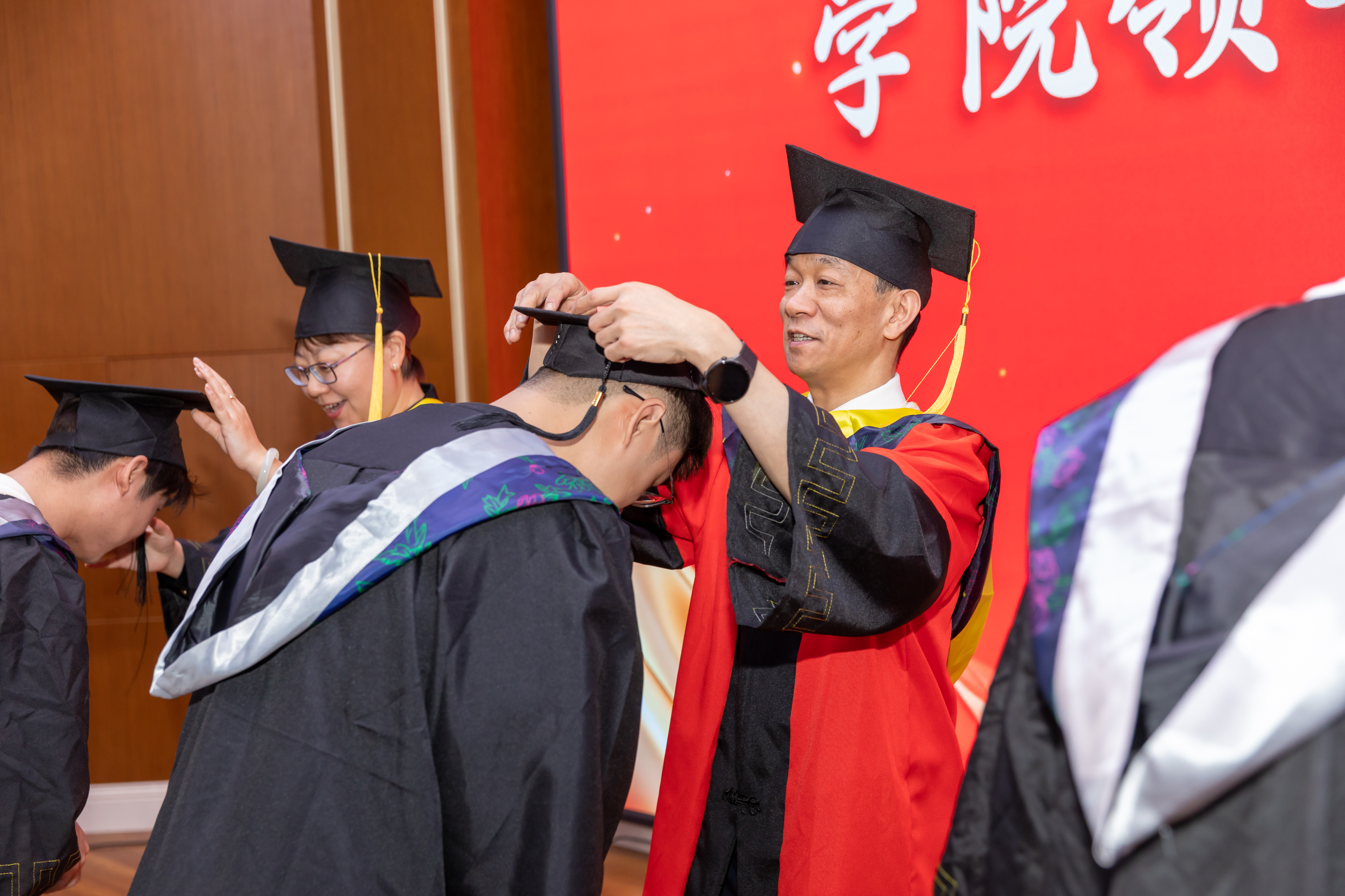 典礼最后,学院领导为毕业生拨穗正冠。