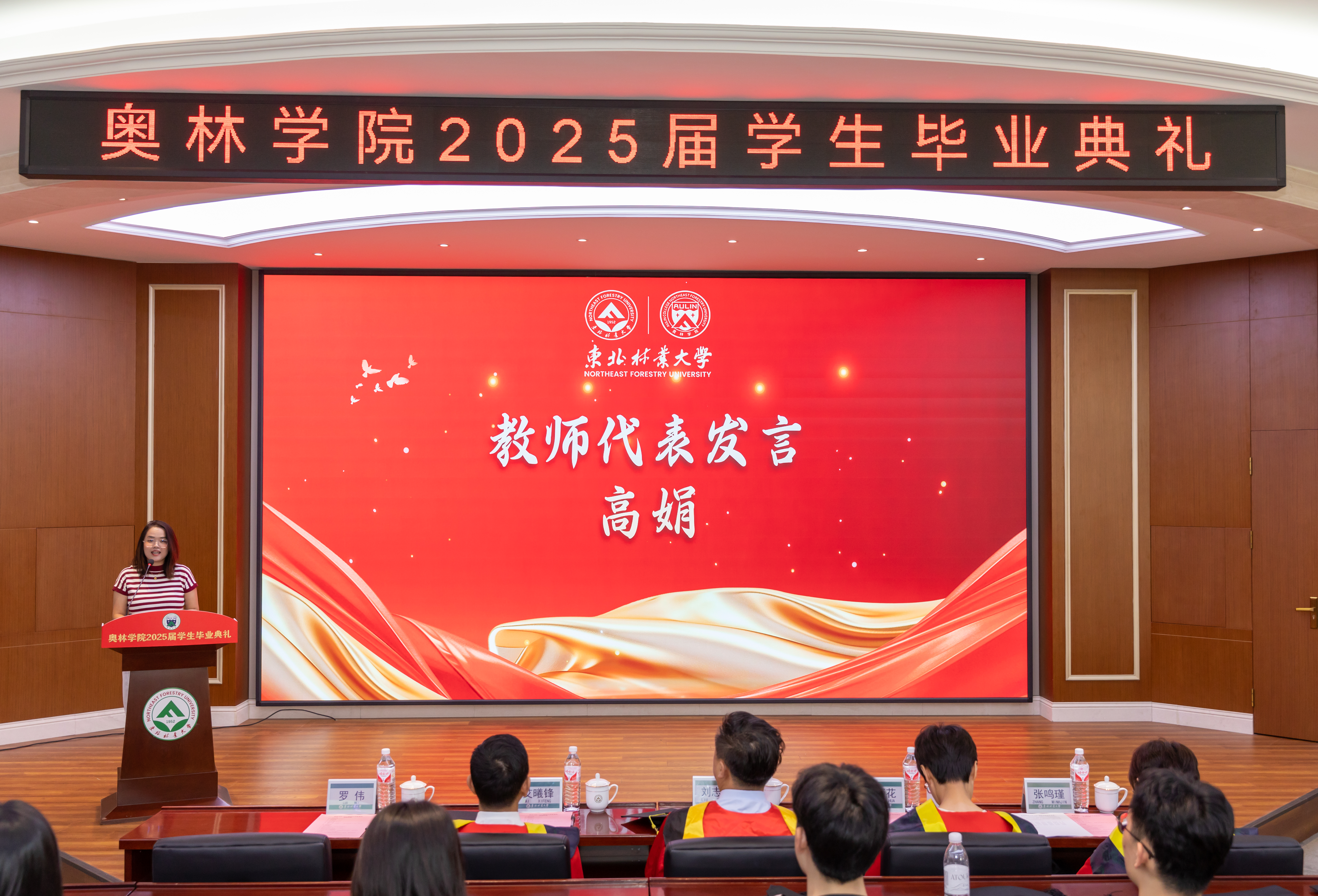 教师高娟代表奥林学院全体教师为同学们送上毕业祝福。她以四季作比,愿同学们怀揣着在东林汲取的丰厚滋养,在未来崭新的疆土上扎根伸展。