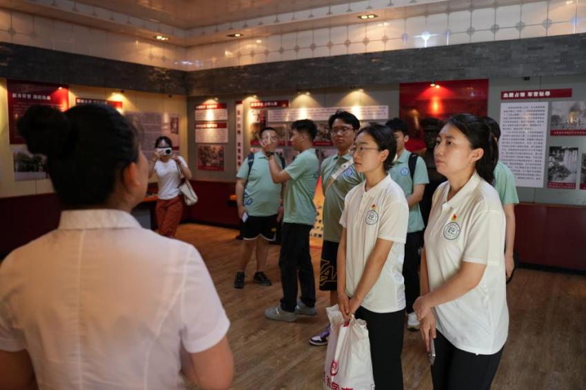“这不是一支普通的钢笔,它见证了无数重要决策的诞生。”讲解员的话语,让大家眼眶湿润。大家轻轻擦拭玻璃展柜,仿佛要拂去历史的尘埃,与革命先辈进行一场跨越时空的对话。为纪念中国人民抗日战争暨世界反法西斯战争胜利80周年,7月4日,理学院绿冀青年志愿者协会党支部师生党员赴宾县中共北满分局旧址、王以哲将军纪念馆开展沉浸式红色教育实践活动,向学校第十四次党代会献上青春礼赞。