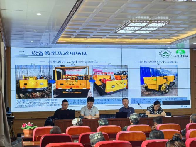 团队成员、科技小院“黑土青松-青年实干家”孟繁伟博士结合《黑龙江省桦树液采集管理办法(试行)》,对采收标准规程进行了系统讲解,强调在保障树体健康和林地生态完整的前提下,实现科学有序的资源采集。丁禹程老师围绕运输装备的使用技巧、应用场景及环保性能进行了详细说明,并与林场工人展开互动交流,探讨装备使用中的实际问题及改进方向。
